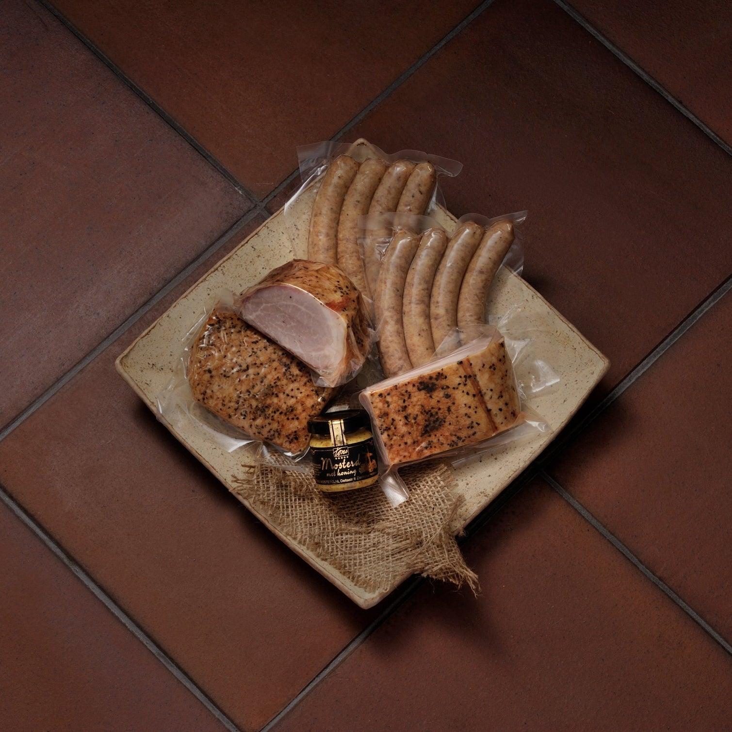 ルーシー(無添加ソーセージ)×2/とんとろスモーク(無添加)/無添加モモハム/無添加ベーコン ○マスタード付き
